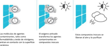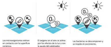 Destruye microorganismos, reduce los óxidos de nitrógeno en el aire, la lluvia limpia tu fachada, elimina los grafitis.